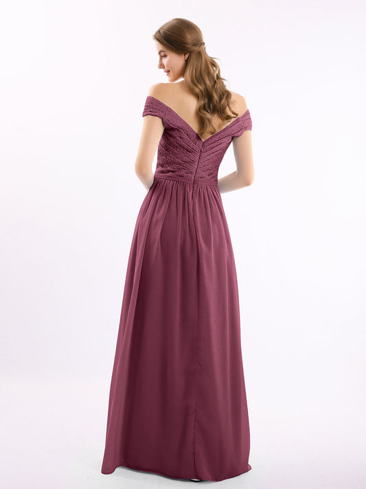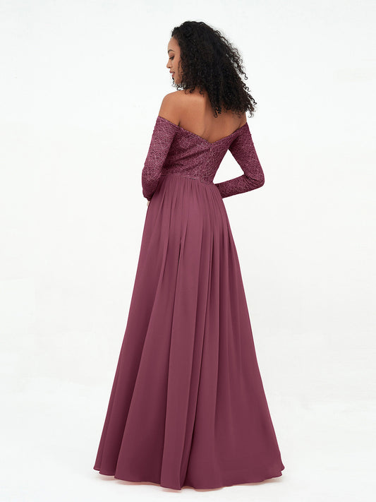 Babaroni JoannaVestidos largos de encaje con mangas largas y hombros descubiertos Morado