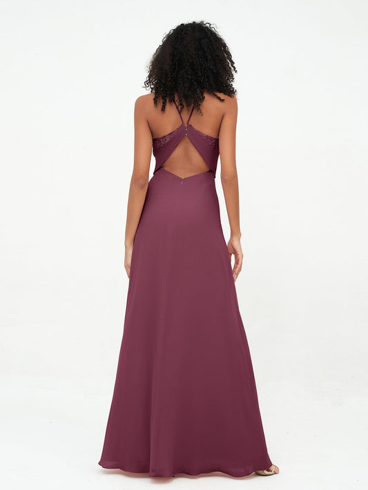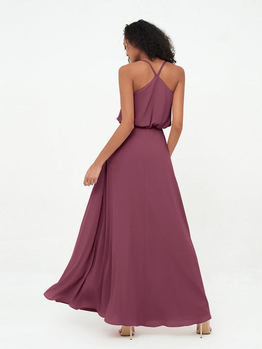Babaroni CynthiaVestidos largos de chiffon estilo halter con espalda descubierta Morado