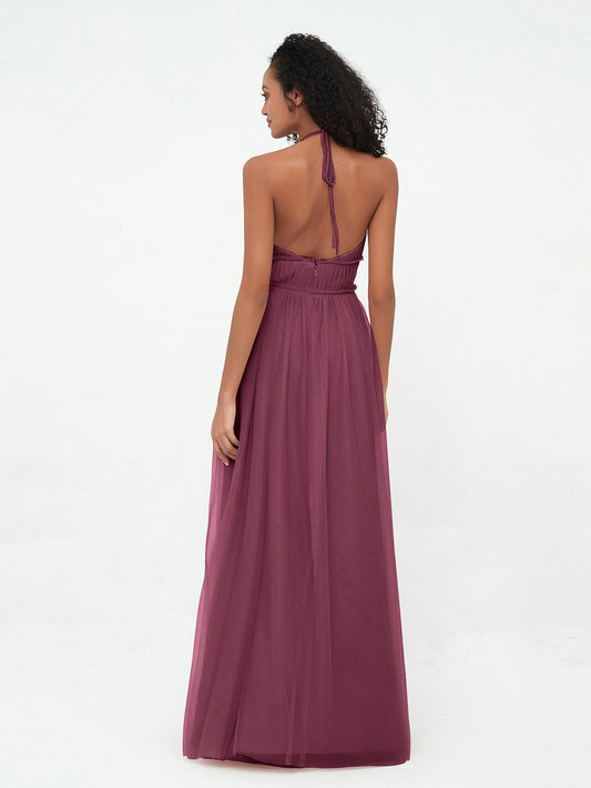 Babaroni GeraldineVestidos boho máximos de tul con escote halter ilusión Morado