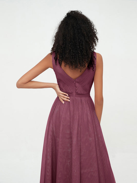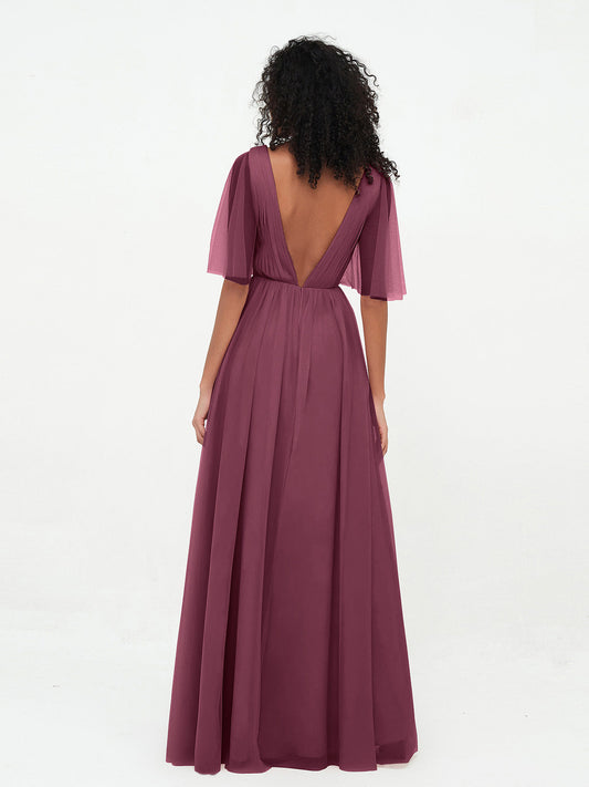 Babaroni KatherineVestidos máximos de tul estilo A-line con escote en V profundo en la espalda Morado