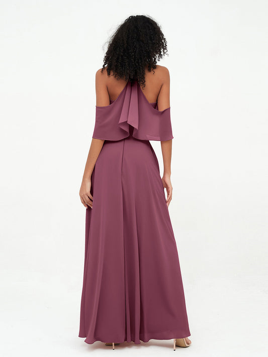 Babaroni IvyVestidos máximos de chiffon estilo halter con hombros descubiertos Morado