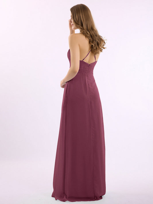 Babaroni LesleyVestidos largos de chiffon estilo halter con doble tirante Morado