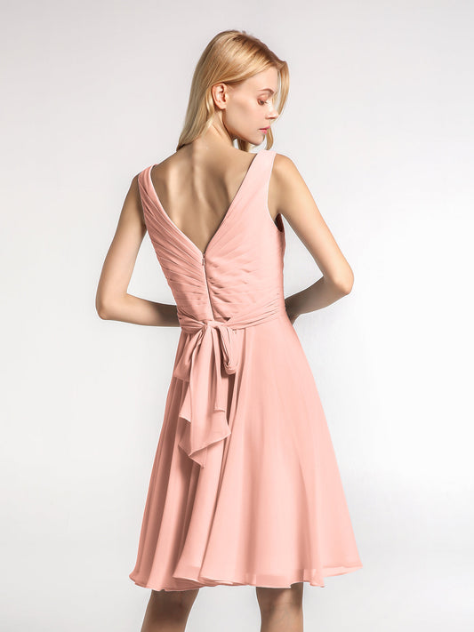 Babaroni CloverVestidos de chiffon con espalda descubierta y escote en V Coral