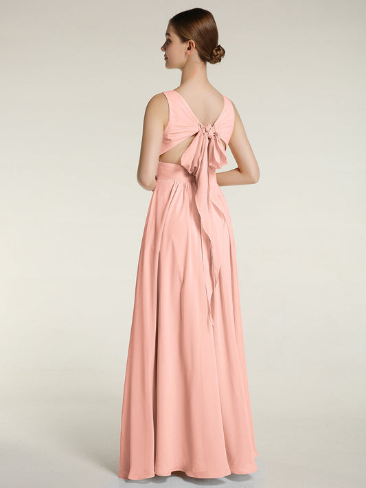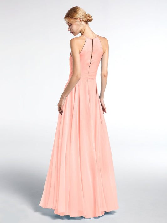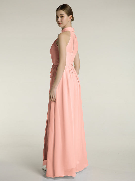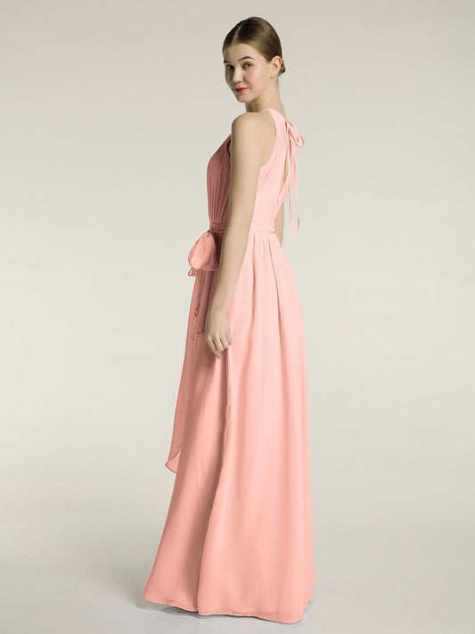 Babaroni JaneVestidos largos de chiffon estilo halter con lazo Coral