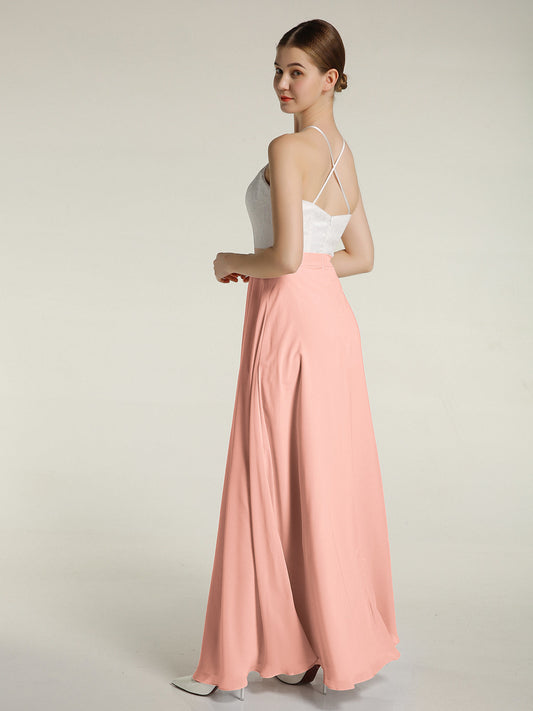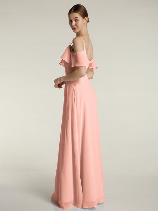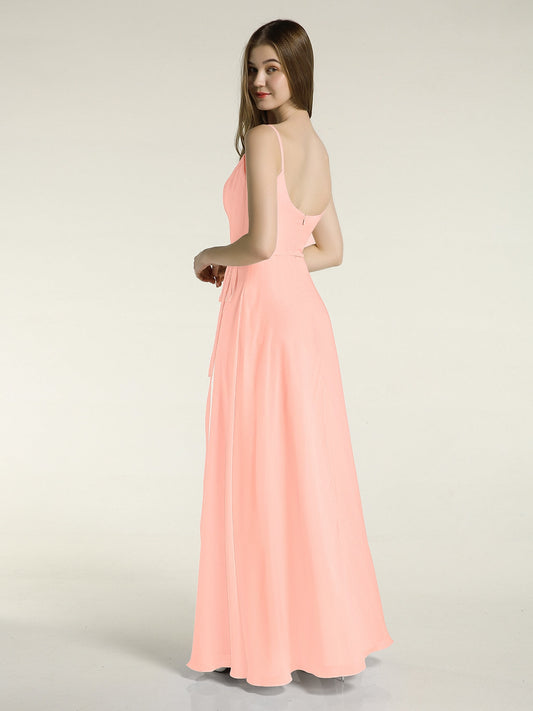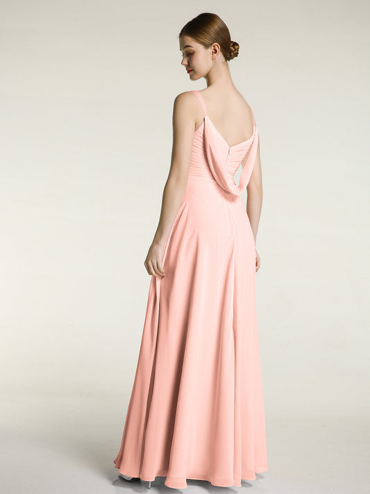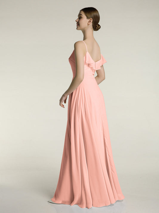 Babaroni MaudSencillos vestidos largos de chiffon con tirantes finos y abertura Coral
