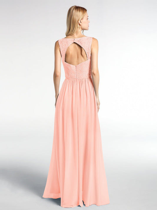 Babaroni KittyVestidos largos de chiffon con cuerpo de encaje marfil Coral