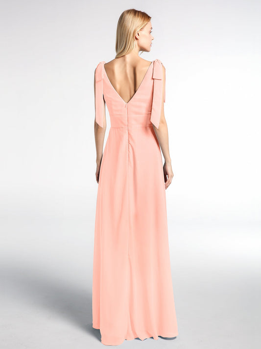 Babaroni JuliaVestidos largos de chiffon con tirantes finos y escote en V Coral