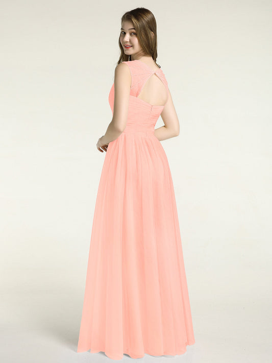Babaroni VeraVestidos largos de tul cruzado plisado con tirantes decorados con cuentas Coral