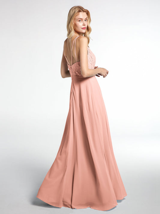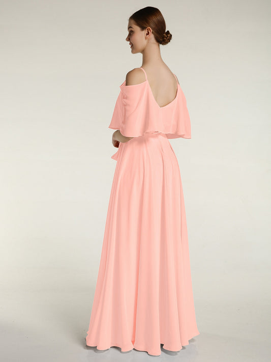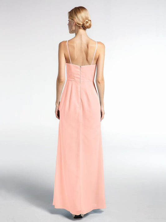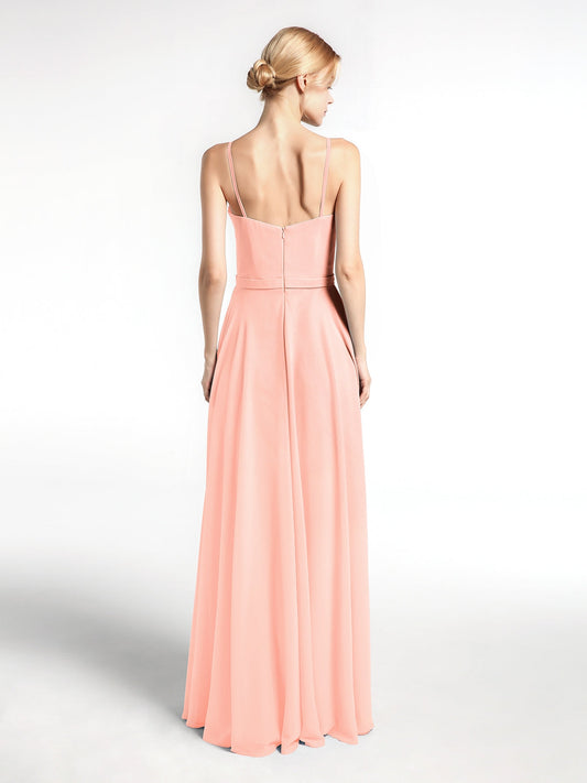 Babaroni NatalieVestido maxi simple de chiffon con escote en V y tirantes finos Coral