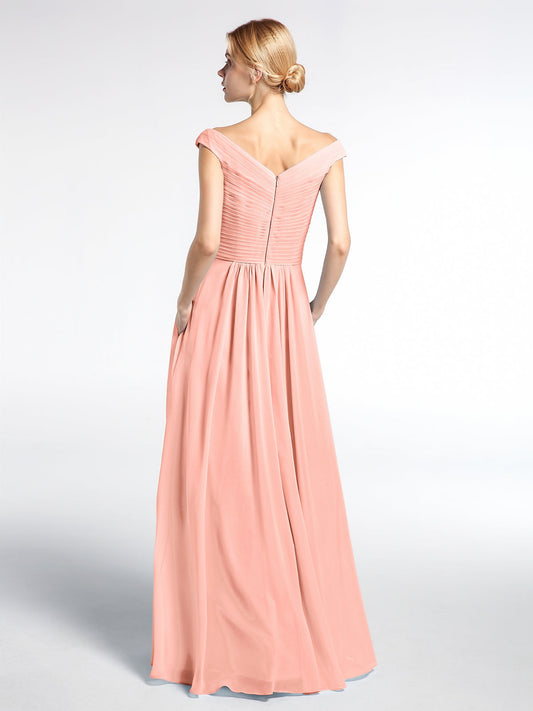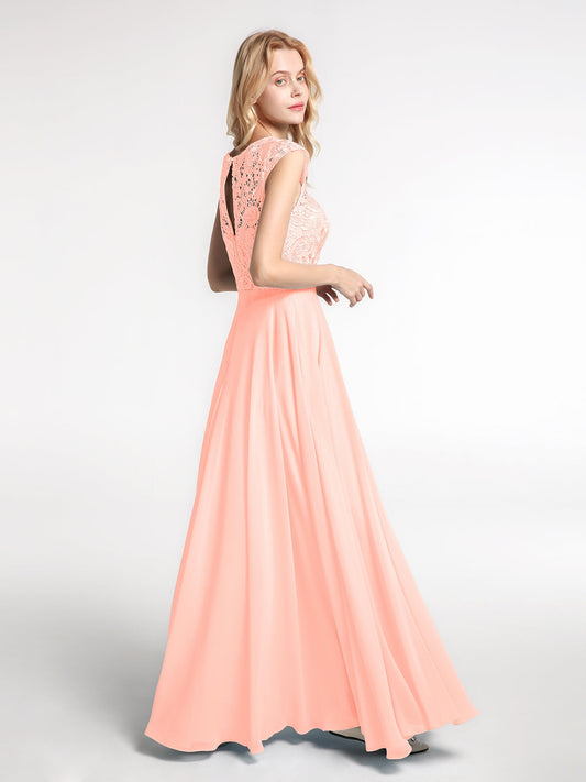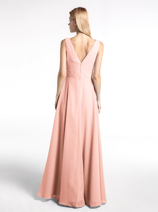 Babaroni SibylVestido largo de chiffon sencillo con escote en forma de muesca Coral