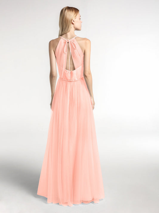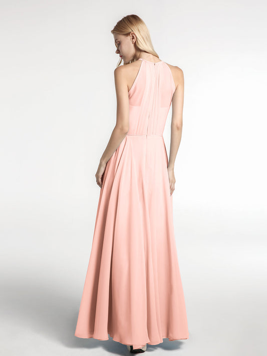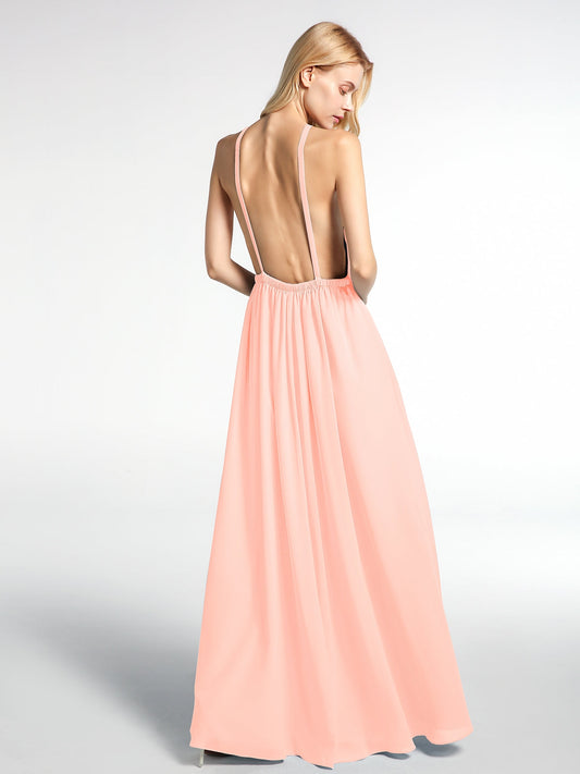 Babaroni ReneeVestido sexy maxi de chiffon con cuello halter y espalda baja Coral