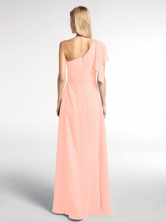Babaroni SalomeVestido maxi de chiffon de un solo hombro con detalle en cascada Coral
