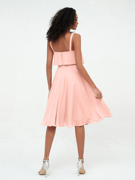 Babaroni AnnaVestidos cortos de chiffon con tirantes para la dama de honor con falda redonda Coral