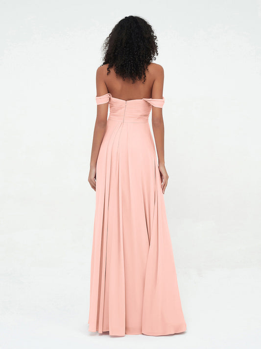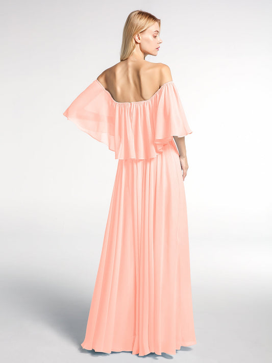 Babaroni VirginiaVestidos máximos de chiffon con falda escalonada estilo off shoulder Coral