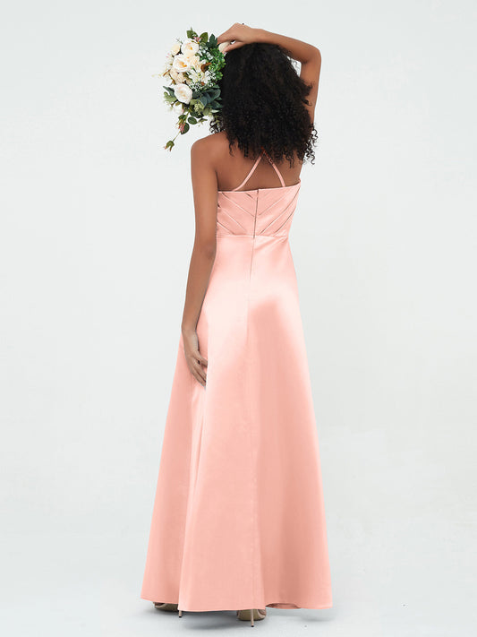 Babaroni TrudaVestidos máximos de satén estilo A-line con cuello halter y bolsillos Coral