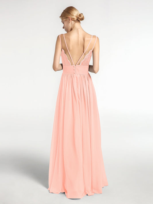 Babaroni CoraVestido largo de dama de honor de chiffon con tirantes dobles Coral