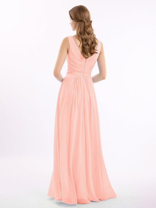 Babaroni GeorgiaGeorgia Escote En V Gasa Largo Vestido De Dama De Honor Coral