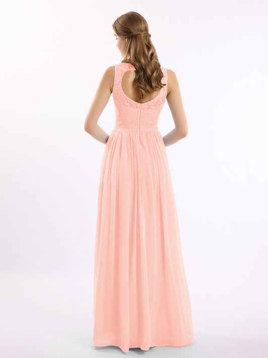 Babaroni GwendolynGwendolyn Encaje Y Gasa Largo Corte De Dama De Honor Coral
