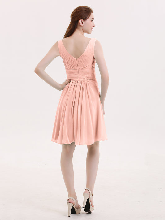 Babaroni ShirleyShirley Escote En V Gasa Corto Vestidos De Dama De Honor Coral