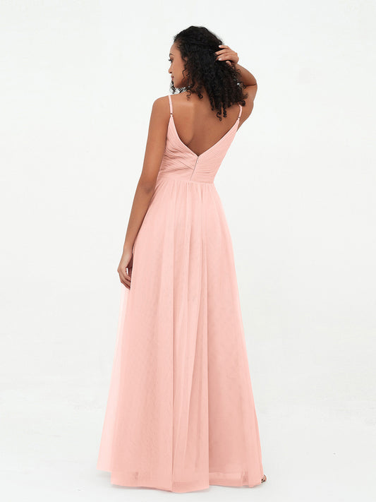 Babaroni MarjorieVestidos largos de tul plisado con tirantes spaghetti Coral