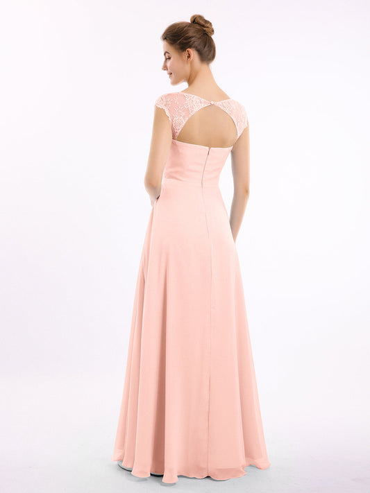 Babaroni MarleyVestidos de dama de honor de chiffon con mangas cap de encaje Coral