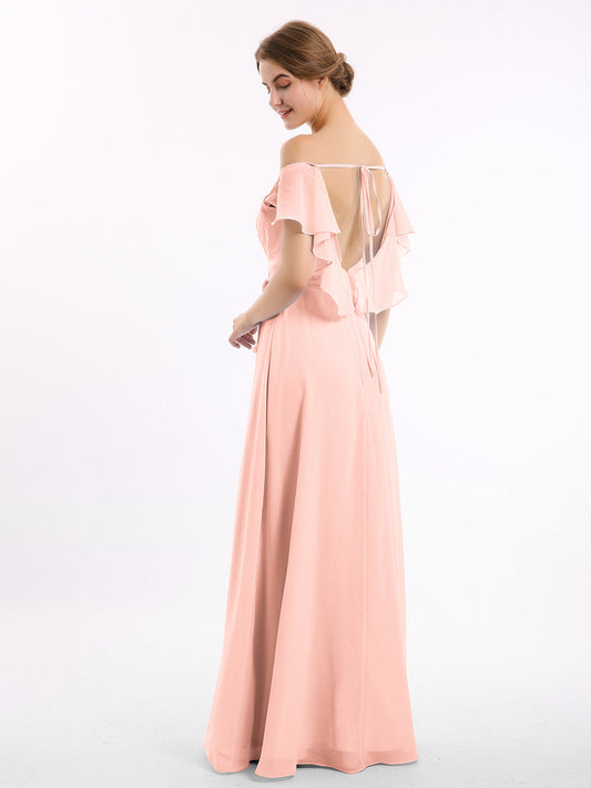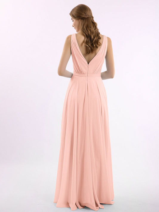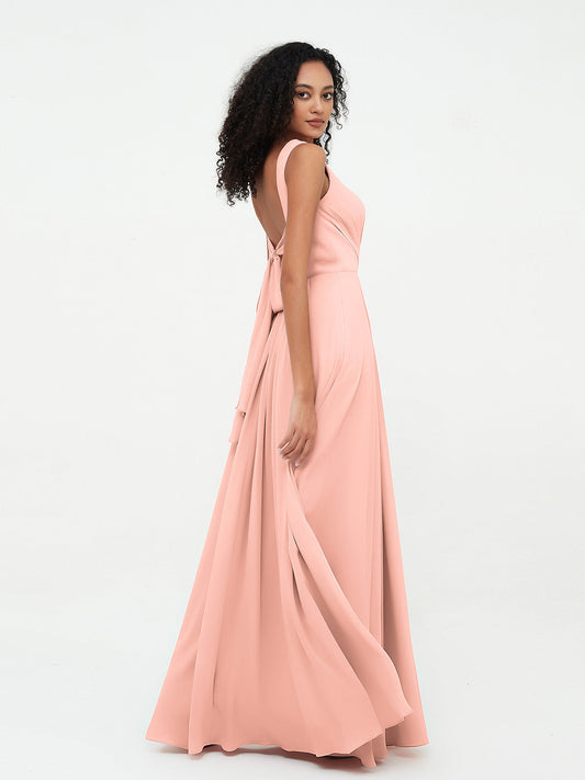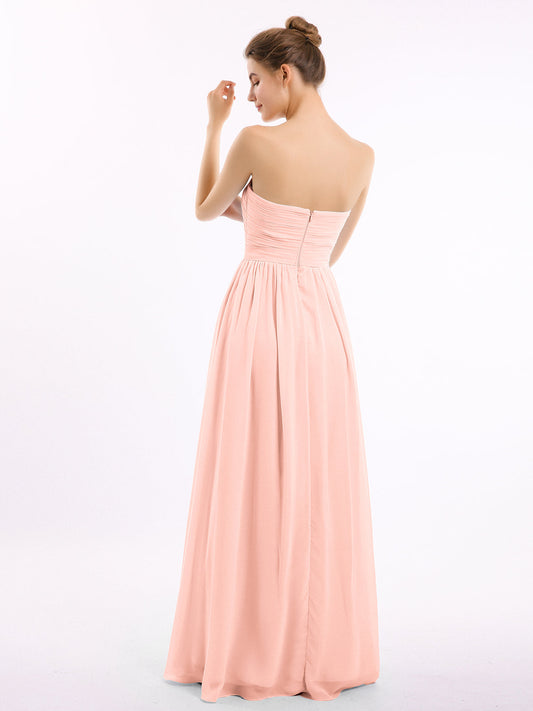 Babaroni NicoleVestidos largos de dama de honor de chiffon sin tirantes Coral