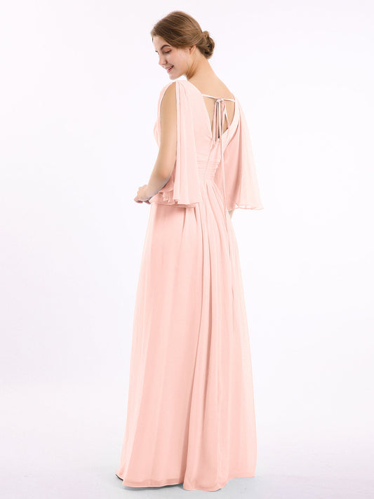 Babaroni SallyVestidos de dama de honor de chiffon con mangas cap y abertura Coral