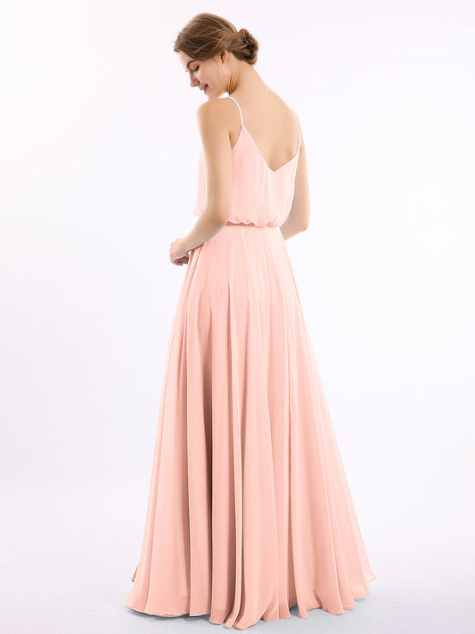 Babaroni TeaganVestidos de dama de honor de chiffon con tirantes finos y escote en V Coral