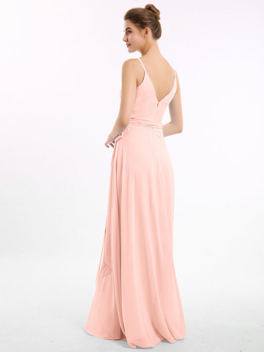 Babaroni VickyVestidos de dama de honor de chiffon con escote en V y tirantes finos Coral