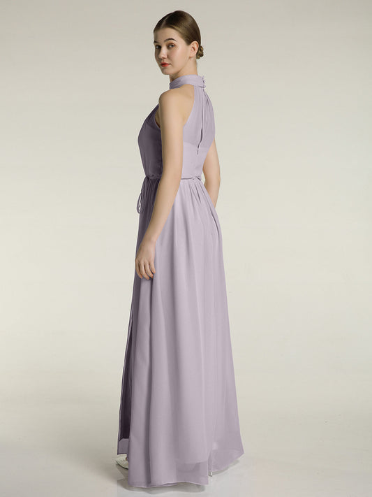 Babaroni KimiVestidos de chiffon de cuello alto con abertura y lazo de cinturón Crepúsculo