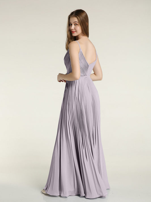 Babaroni MaudSencillos vestidos largos de chiffon con tirantes finos y abertura Crepúsculo
