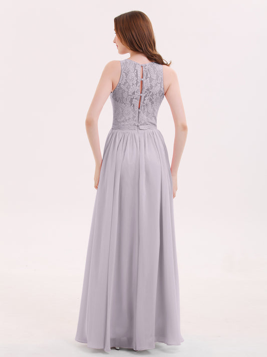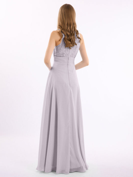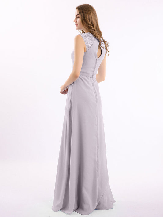 Vestidos largos de chiffon con encaje en escote en V profundo y espalda descubierta Crepúsculo