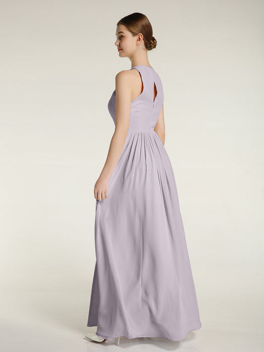 Vestido sencillo de chiffon estilo halter con abertura Crepúsculo