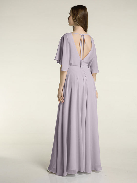 Vestidos largos de dama de honor de chiffon con mangas de volantes Crepúsculo