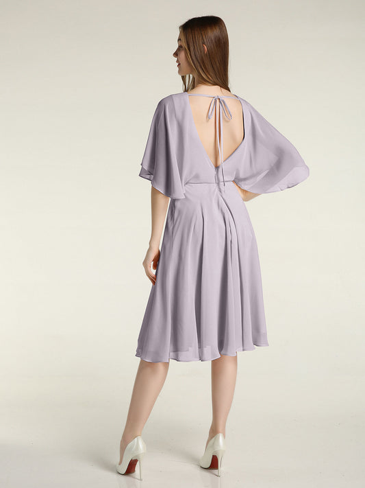 Vestidos cortos de chiffon con escote tipo scoop y mangas de volantes Crepúsculo