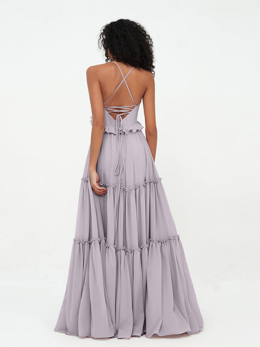Babaroni UrsulaVestidos máximos bohemios de chiffon con falda escalonada estilo Empire Crepúsculo