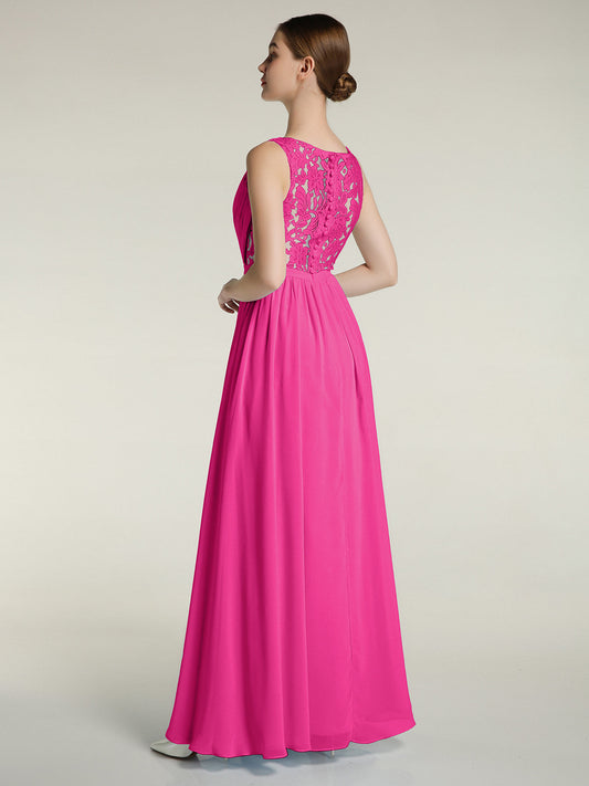 Babaroni MariaVestidos largos de chiffon de cuello en Y para damas de honor Fucsia