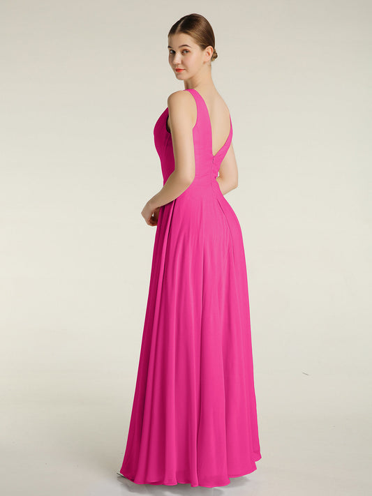 Babaroni CarolVestidos sencillos de chiffon con escote en V Fucsia