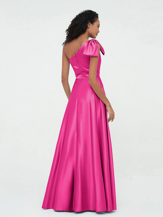 Babaroni PrimroseVestidos largos de satén de un hombro con bolsillos Fucsia