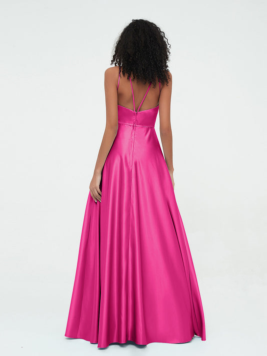 Babaroni MyrnaVestidos máximos de satén estilo A-line con tirantes spaghetti Fucsia