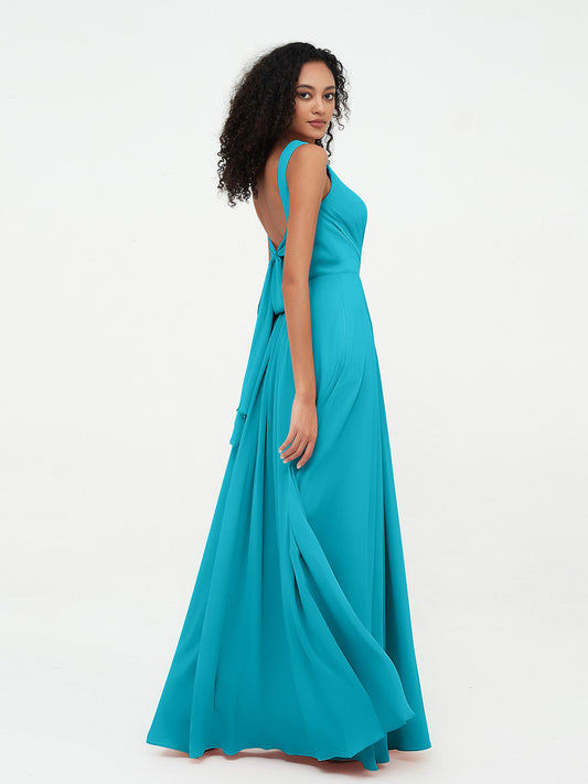 Babaroni NicoleVestidos largos de dama de honor de chiffon sin tirantes Jade