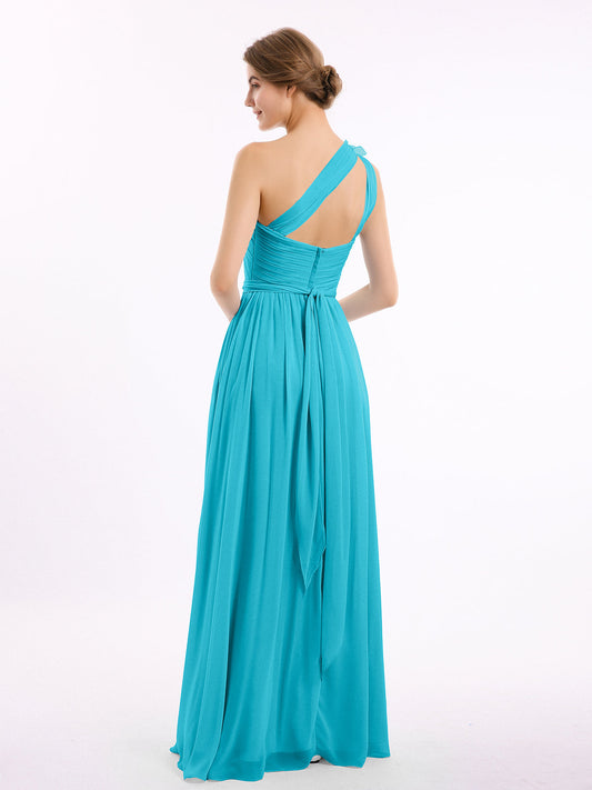 Babaroni LynnVestidos de chiffon con un hombro de flor y bolsillo Jade