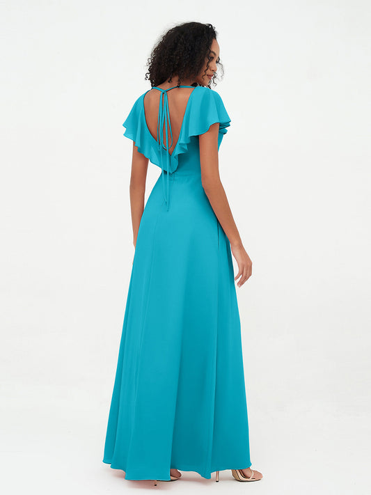 Babaroni PagVestidos estilo A-line de chiffon con escote en V y abertura Jade