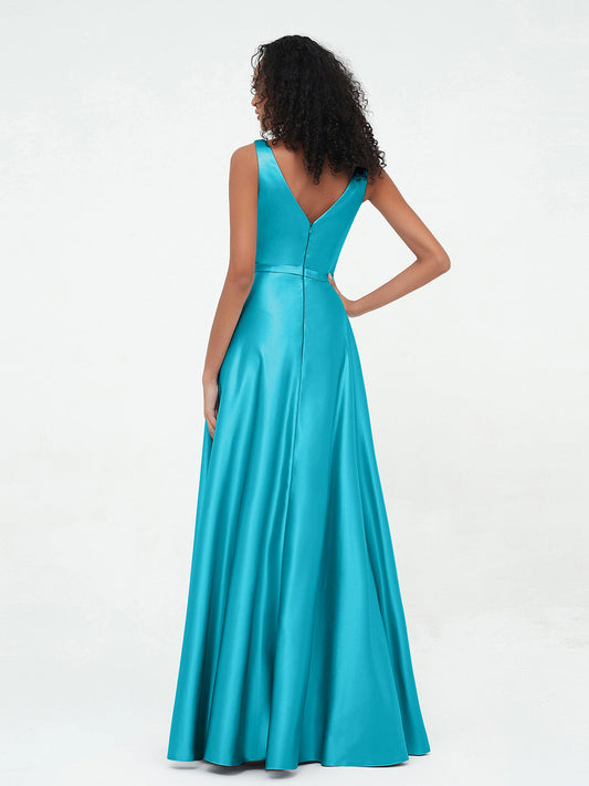 Babaroni SadeVestidos máximos de satén estilo princesa con escote en V y bolsillos Jade