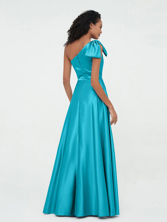 Babaroni PrimroseVestidos largos de satén de un hombro con bolsillos Jade
