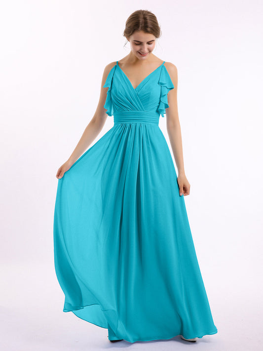 Babaroni VickyVestidos de dama de honor de chiffon con escote en V y tirantes finos Jade