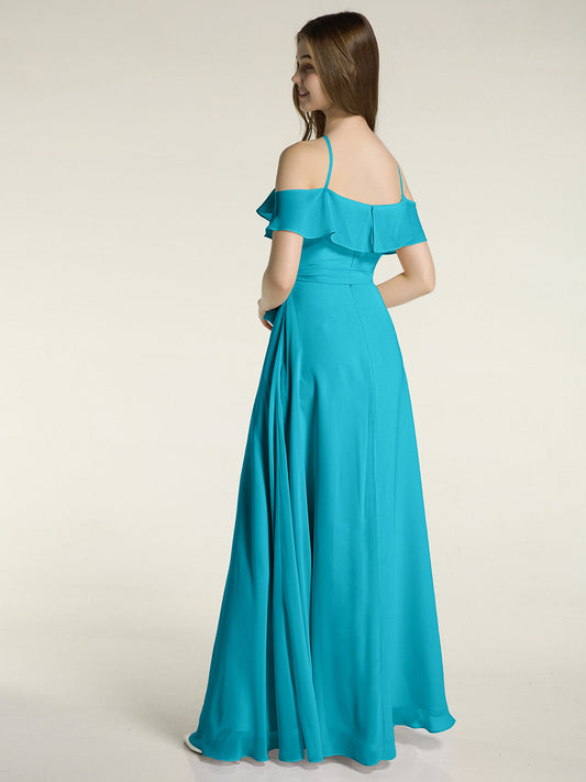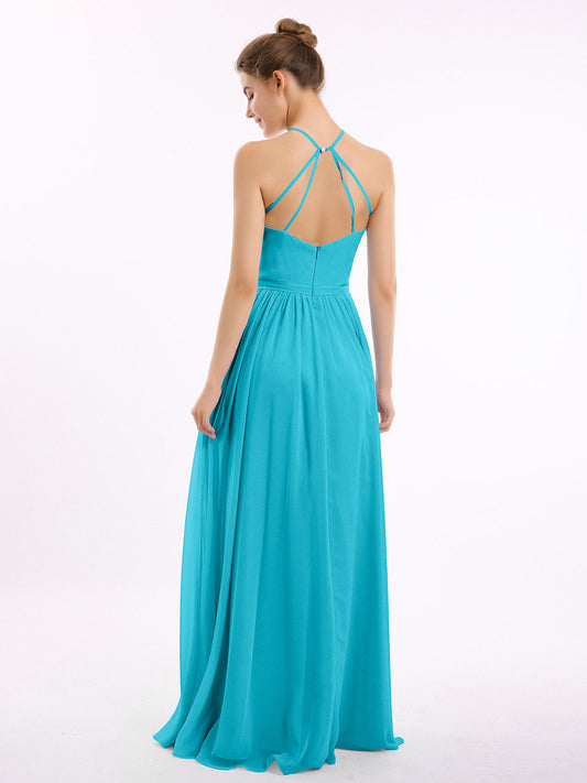 Babaroni LesleyVestidos largos de chiffon estilo halter con doble tirante Jade