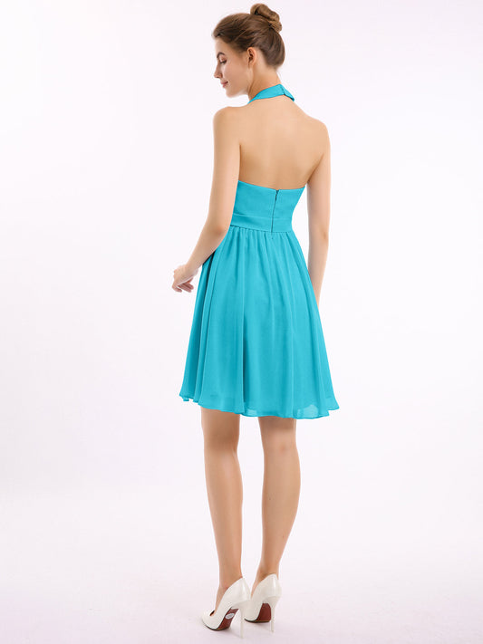 Babaroni KyreneVestidos cortos de chiffon estilo halter para damas de honor Jade