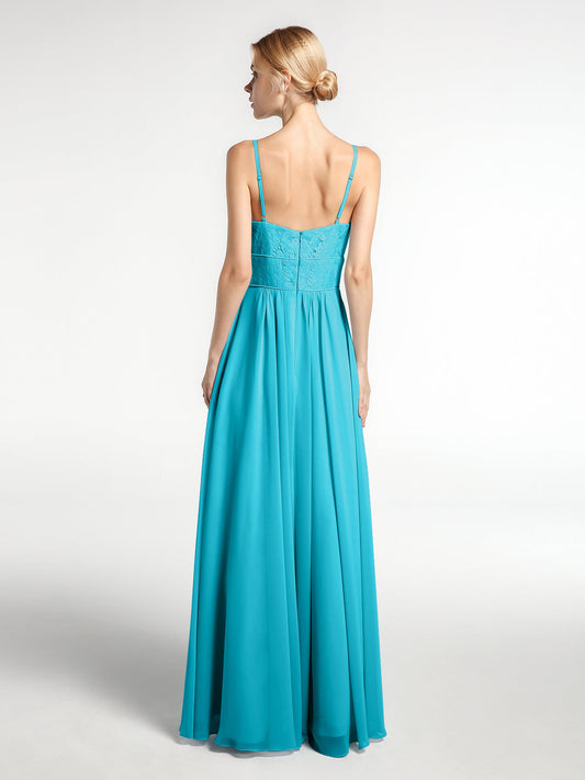 Babaroni CherryVestidos largos de encaje y chiffon con tirantes finos Jade