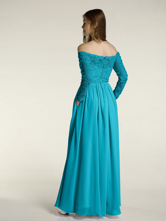 Babaroni MeilaniVestidos de encaje y chiffon con mangas largas y bolsillos Jade